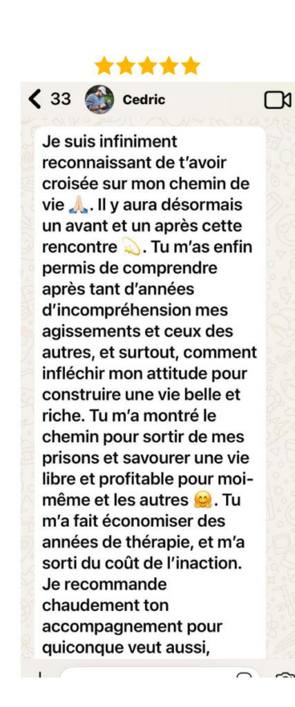 Rejoignez-moi sur ZOOM, oĂč je vous aiderai Ă  surmonter les blocages internes et Ă  construire un plan d'action pour VOUS permettre d’ atteindre vos objectifs et vos rĂȘves !