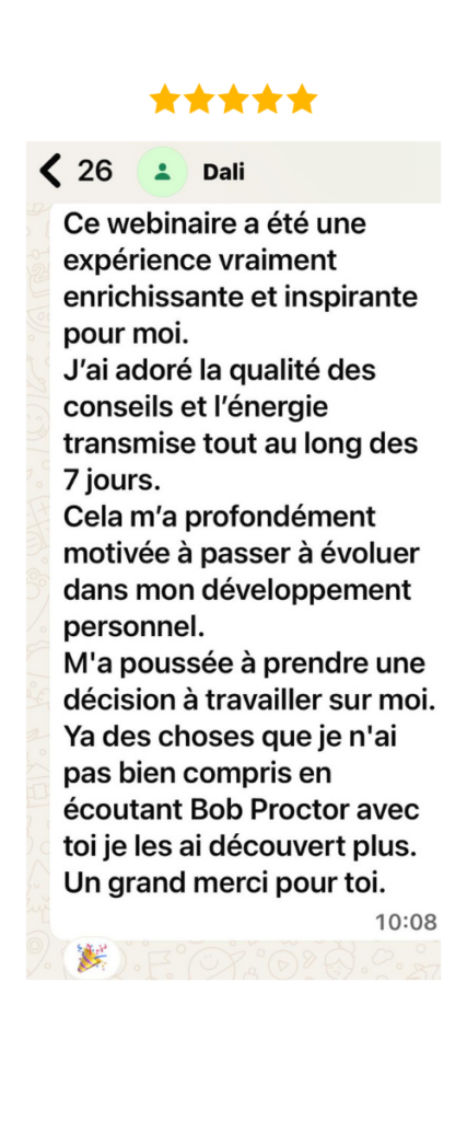 Vous allez transformer votre vision de l’argent ( et ouvrir de nouvelles possibilitĂ©s). Au cours des 5 derniĂšres annĂ©es, j'ai totalement rĂ©inventĂ© et transformĂ© mon univers financier,, lancĂ© en pleine crise personnelle une entreprise qui gĂ©nĂšre aujourd'hui un chiffre d'affaires Ă  six chiffres et dans ma mission de vie, aprĂšs 15 ans sans travailler, sans rĂ©seau, et gĂ©nĂšre de beaux revenus passifs et dĂ©mĂ©nagĂ© pour vivre dans un environnement dĂ©passant tous mes espoirs. Ce n'est pas un hasard.